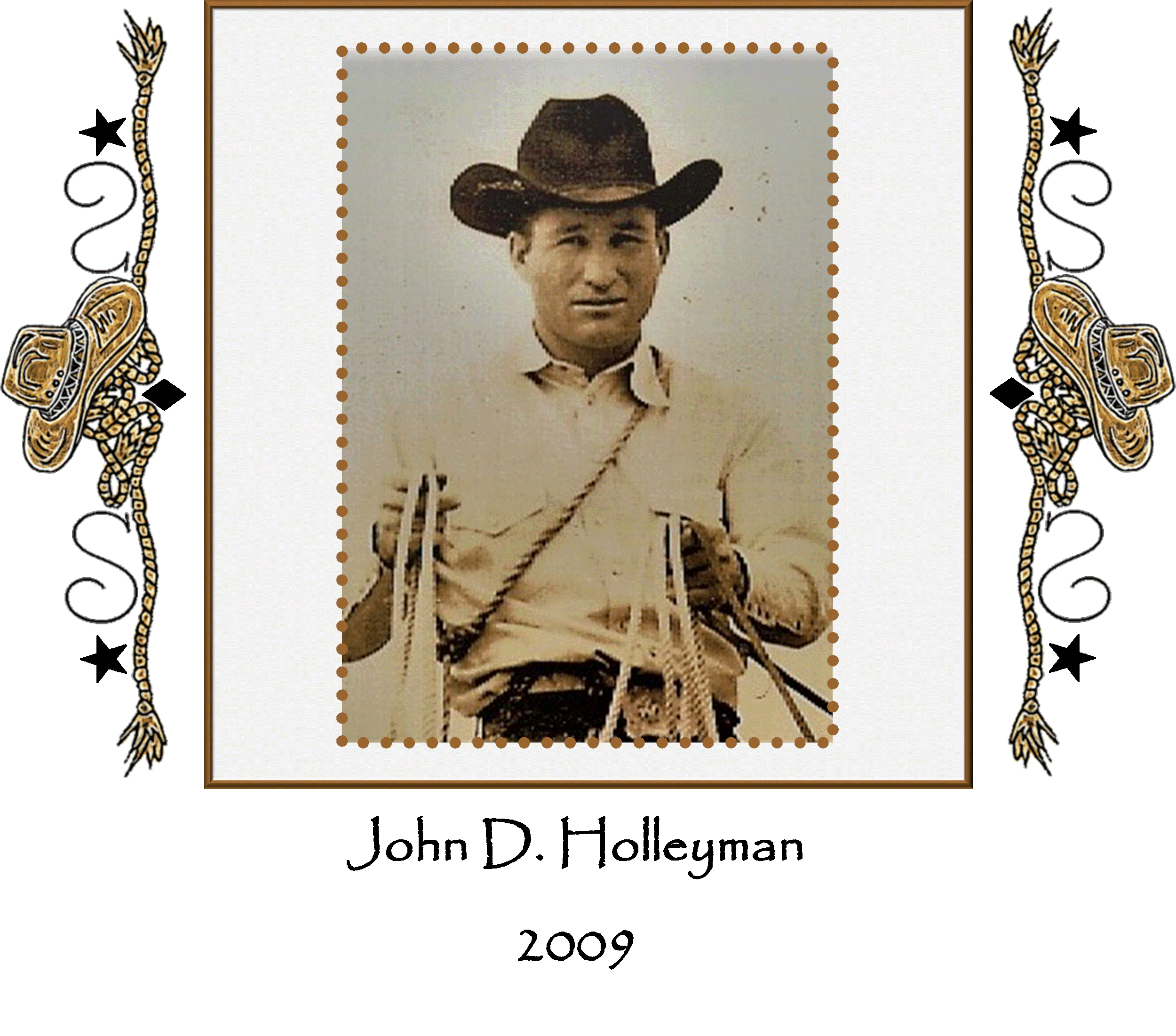 Always known as a roper's roper, John D was born on January 7, 1920, in Sipe Springs, Texas. With the country being in the depths of drought and hard times, the Holleyman family moved many times to different parts of Texas and New Mexico.
